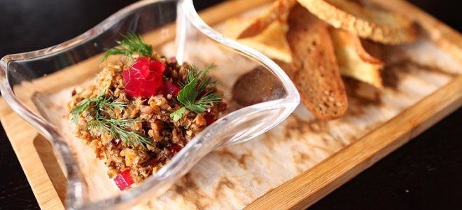 Рецепт грибной икры, приготовленной из лисичек с добавлением лука и зелени, приятно разнообразит ваше повседневное меню в зимний период времени.