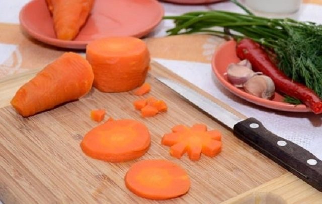 - Морковь отварную порезать на красивые кусочки для украшения.