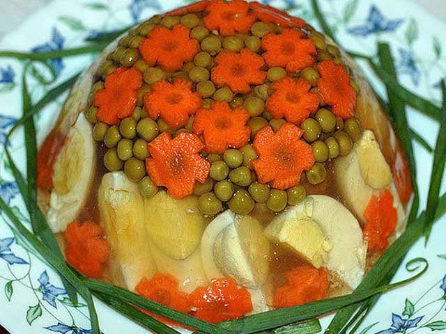 Любое заливное относится к категории холодных закусок, и такие закуски многие хозяйки с удовольствием готовят на праздничный стол. Ведь, если дело касается любого застолья, семейного торжества или банкета, то что может быть лучше этого эффектного, яркого и вкусного угощения. Оно всегда делает стол праздничным, разнообразным и неизменно является украшением любого торжества!