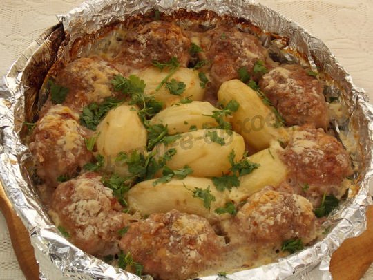 Приготовление картофеля с котлетами в духовке