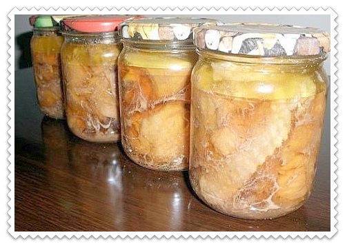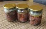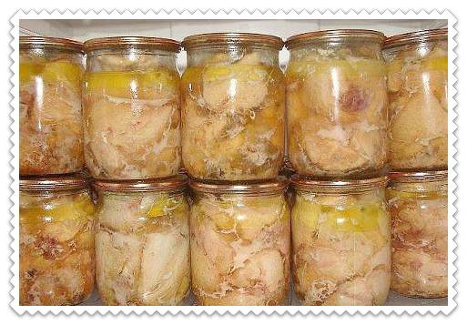 - Разложить по стерилизованным банкам, залить выступившим мясным соком.