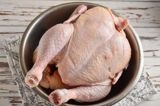 Понадобится целая курица – это может быть суповая птица или бройлер. Во втором случае время варки можно сократить, так как бройлер намного быстрее сварится. Охлажденную тушку нужно промыть чистой водой и удалить все лишнее.
