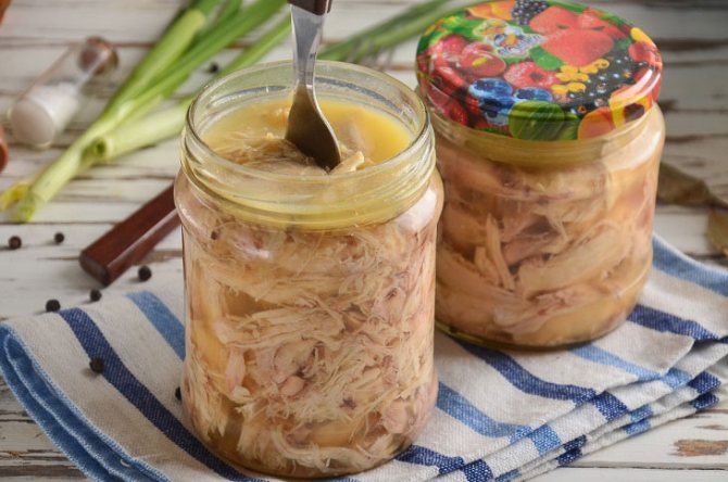 - Берите от курицы обязательно бедра или голени: там есть жир, который обеспечит домашним консервам сочность.