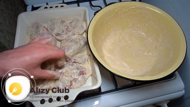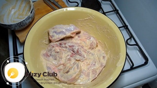 Куски мяса маринуют около получаса, периодически переворачивая их.