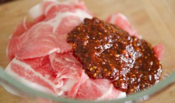 - Обработайте мясо нужным образом – вымойте и обсушите. Измельчать его рекомендовано тонкими полосками. По желанию свиное мясо можно заменить говяжьим или даже телятиной