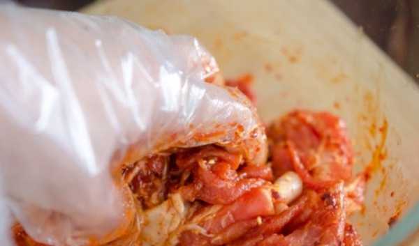 - Влейте к главному ингредиенту ранее приготовленный маринад, оставьте мариноваться на 1,5 час.