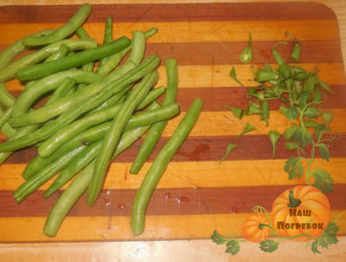 - Нарезать стручковую фасоль и отваривать в течение 5 минут.