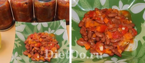По словам специалистов, фасоль должна присутствовать в рецептах человека ежедневно, даже зимой, когда свежего овоща не найти. Самое главное, это правильное приготовление этого овоща, чтобы раскрыть весь ассортимент пищевой ценности. В современном мире зимой на прилавках магазинов существует большой выбор фасоли в различном виде, но чаще всего, в консервированном. Это салаты из нее и других овощей, фасоль в различных соусах и в натуральном виде в банках. Но что может сравниться по составу и полезности с домашним блюдом, заготовленным на зиму по бабушкиным рецептам? Например, салаты.