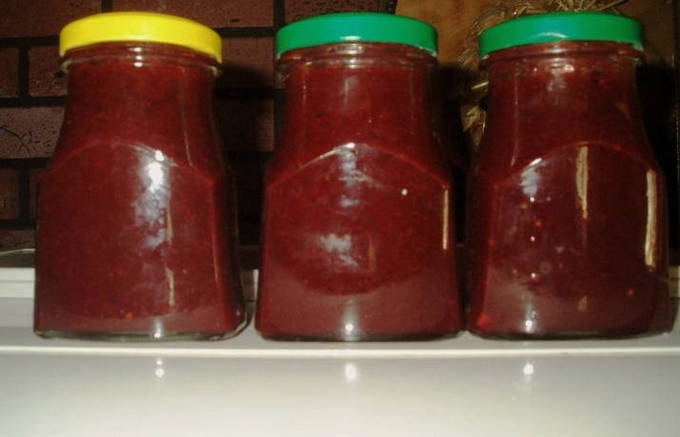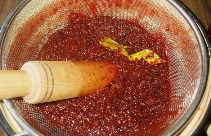 5. Далее всю массу перетираем через мелкое ситечко, разливаем по стерильным банкам, закрываем прокипяченными крышками.