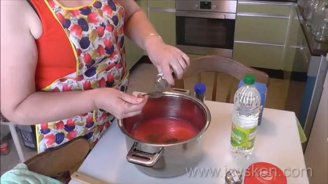 - В сок добавляем 200 мл воды, чтоб получить 2 литра жидкости.