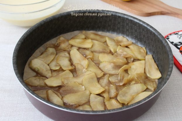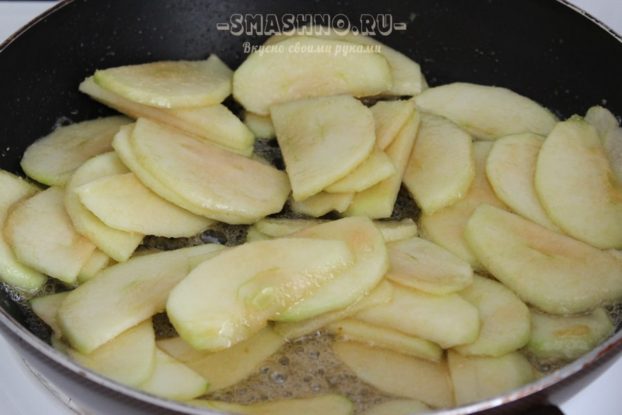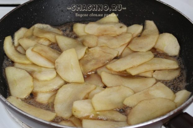 Поскольку яблоки для пирога должны быть карамелизованными, рецепт будет следующий:
