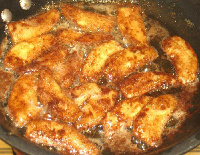 Не менее примечателен и рецепт жареных яблок в карамели. Это лакомство по своим свойствам мало чем отличается от обычных карамелизированных плодов, но куда легче в приготовлении.