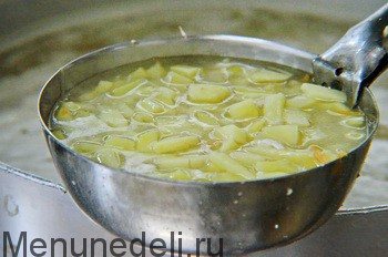 - перед введением картофеля (за 10 минут) нужно опустить в воду мелко нарезанный лук;