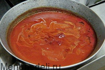 Томатную пасту тоже подвергают термической обработке и пассеруют в растительном масле.