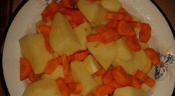 - Морковь необходимо натереть на любой терке, а картошку порезать на кубики;