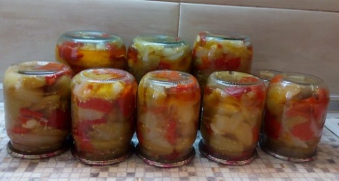 - Кипящую овощную массу разложить по подготовленным банкам, закатать крышками, дать остыть в перевернутом виде под одеялом.