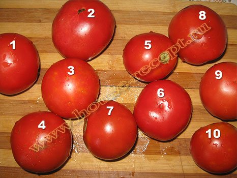 - Если использовать классический рецепт баклажанов 10 на 10 на зиму, то теперь надо подготовить для зимнего овощного консервированного салата томаты. Что следует сделать с помидорами? Томаты следует основательно вымыть и обсушить на полотенце. Потом овощи потребуется нарезать.
