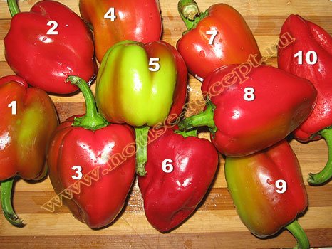 Для приготовления овощной закуски «Десяточка» по классическому рецепту лучше взять перец различных цветов. Это сделает заготовку ярче и аппетитнее.