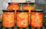 - Овощная оригинальная заготовка должна прокипеть около 40 минут на среднем огне. Не стоит забывать о смеси: ее надо систематически помешивать. Приблизительно за 5 минут до окончания процесса варки пикантной и сытной закуски следует добавить в массу измельченный чесночок. Затем сразу же сюда вливается уксус. Остается только расфасовать готовую закуску по предварительно простерилизованным баночкам. Емкость укупориваются металлическими крышками.