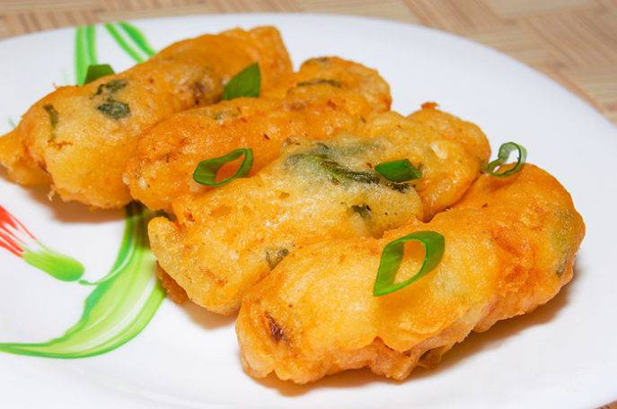 Очень вкусным получается кляр на кефире. Использование крахмала делает тесто особенно нежным и помогает образованию хрустящей корочки.