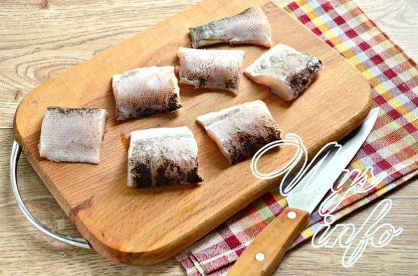 Перво-наперво надо приготовить филе, порезать его на мелкие кусочки размером 4-7 см