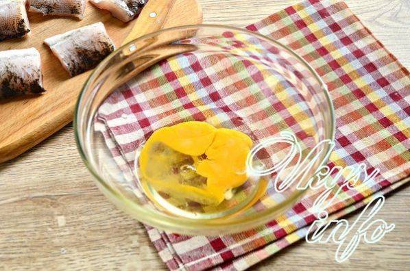 - Нарезать рыбу кусочками, приправить специями и отставить мариноваться, пока будет готовиться кляр.