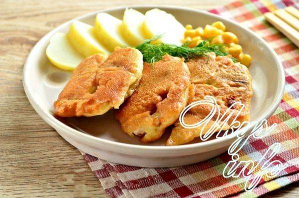 Ломтики щуки, обжаренные в кляре, выглядят аппетитно