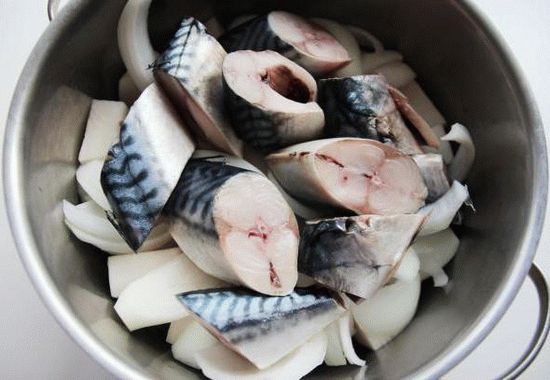 - Скумбрия берется свежая. Разделывается, моется. Это рыба достаточно крупная, поэтому разрезается на куски. Солится по вкусу.
