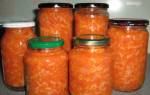 Овощи вымыть, очистить и нарезать соломкой. Укладываем все перечисленные ингредиенты в кастрюлю и варим на слабом огне около 1-го часа после закипания. Расфасовать горячую смесь по банкам, закатать и дать остынуть при комнатной температуре.