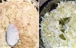 Основным компонентом заготовки является белокочанная капуста. Подготовка этого овоща заключается в очистке его от верхних листов и нарезании тонкими полосками, такими же, как режете при варке обычного супа.