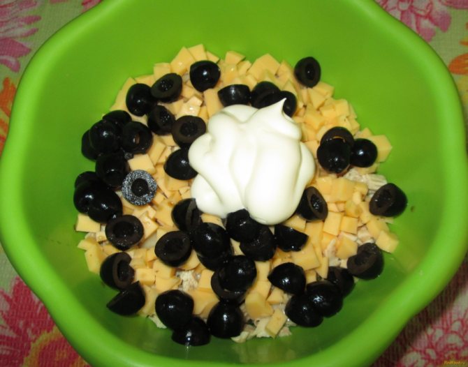 Оригинальное сочетание оливок и грибов достаточно популярно, именно поэтому их добавили в этот салат.