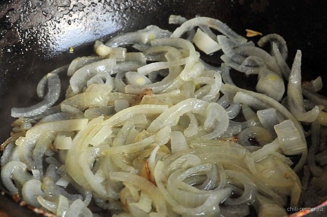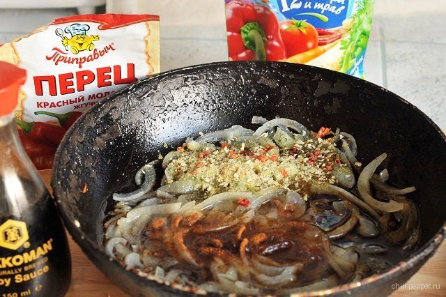 - 4–5 ст. л. разогретого растительного масла с добавлением 1 ч. л. молотого красного перца.