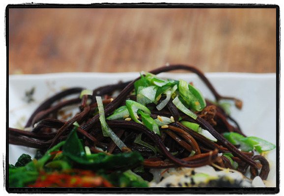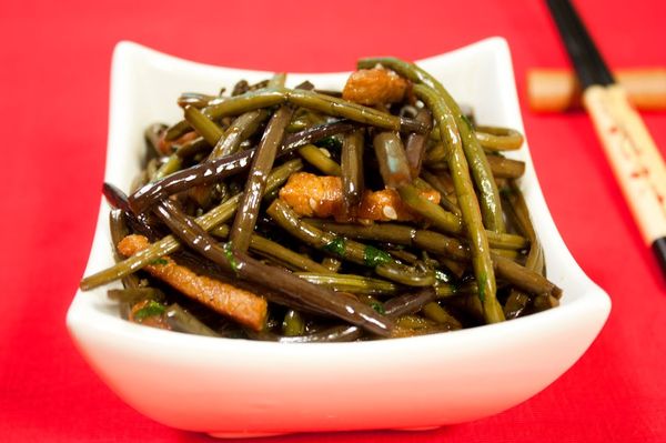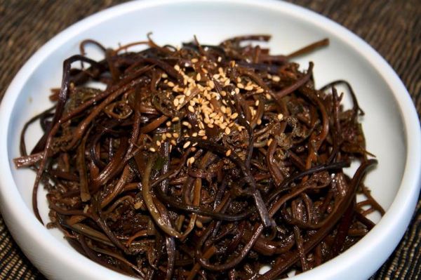 Единственное, каким бы ни был состав, то, что остается неизменным – это присутствие в нем перца, уксуса и соевого соуса. Оригинален салат из папоротника, который по вкусу очень напоминает грибы и является настоящей кладезью белков и углеводов.