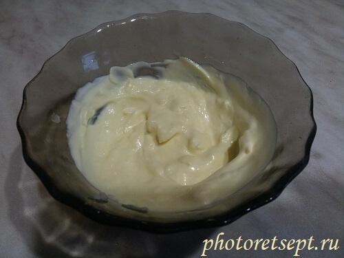 - Заправляем 150 г майонеза. Сделать эту процедуру можно и перед подачей на стол.