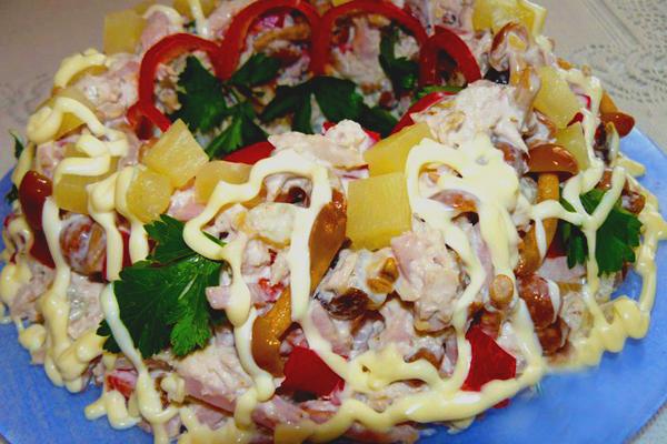 Салат с ветчиной, сыром и ананасами: рецепты, варианты приготовления