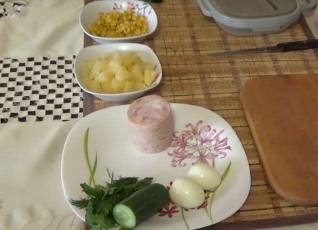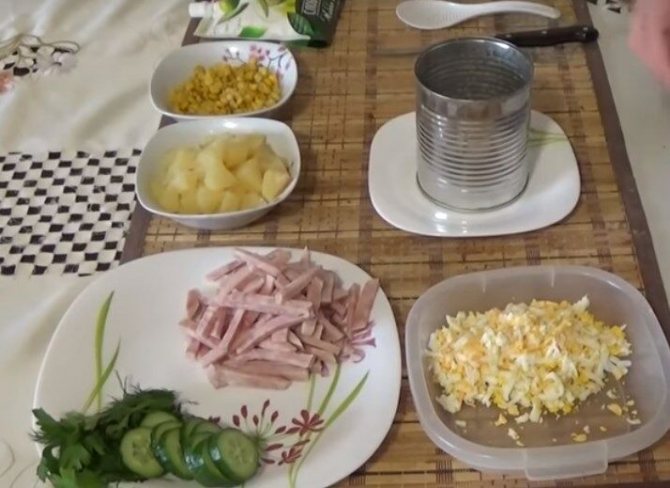 Салат с ананасами и ветчиной для рецепта вам потребуется;
