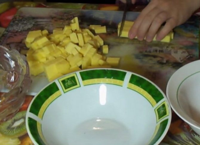 Заключительный слой салата, сыр, который также смазываем майонезом.