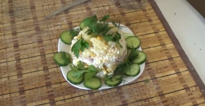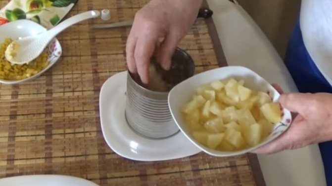 Салат с консервированным ананасом и куриной грудкой и кукурузой