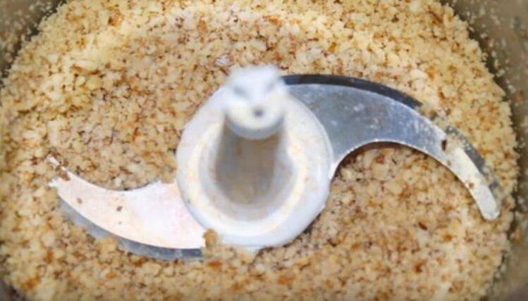 5. И посыпаем измельченным грецким орехом. В данном примере это сделано с помощью блендера.