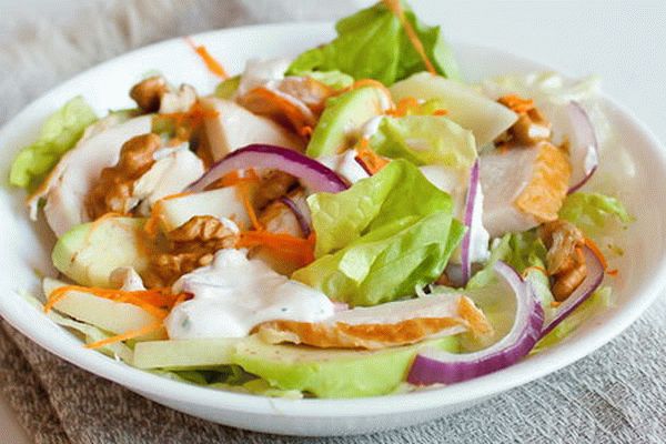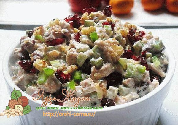 Вариант 1. Классический салат с копченой курицей и грецкими орехами