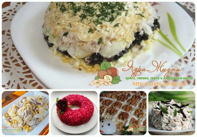Вариант 3. Салат с копченой курицей, черносливом и грецкими орехами