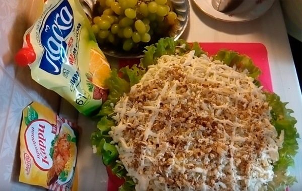 Классический рецепт салата Тиффани с виноградом, курицей и грецкими орехами