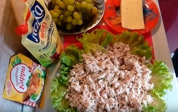 Рецепт простой: салат с виноградом и копченой курицей с фото