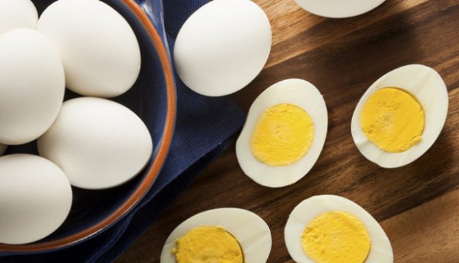 Кипятим воду, помещаем в нее яйца и варим в течение 12 минут вкрутую. Сливаем кипяток, заливаем на 7 минут холодной водой. Затем очищаем и нарезаем соломкой.
