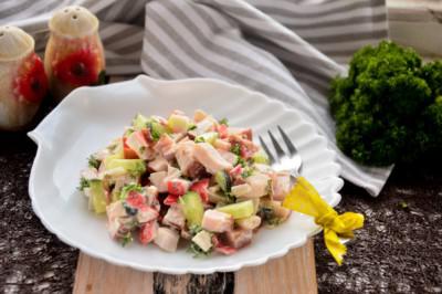 Салат из капусты чой и копченой курицы