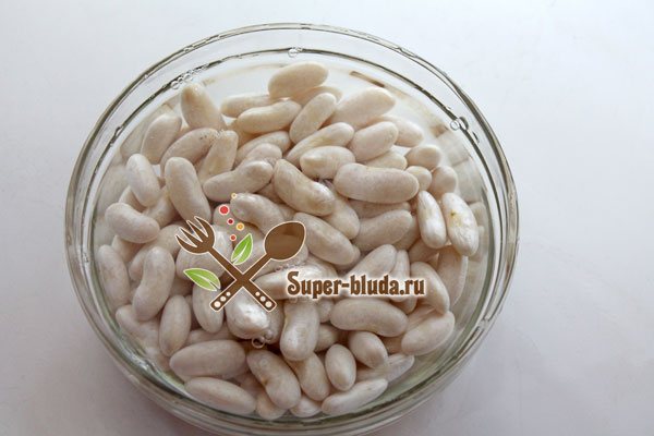 Белую фасоль перебрать и предварительно замочить на 6-8 часов. Удобнее это сделать с вечера.