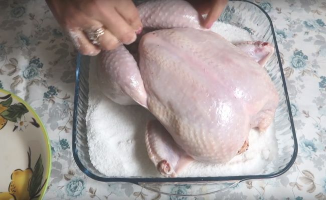Целая курица в духовке с хрустящей корочкой (рецепт на соли)