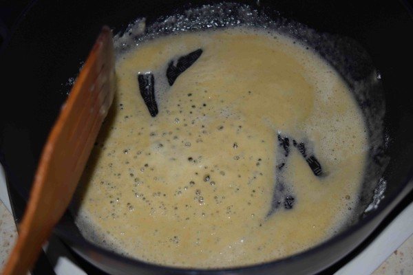 Растопить в сотейнике сливочное масло (на маленьком огне). Сотейник лучше взять хорошего качества, например Ruffoni. Соусы очень чувствительны к «правильности» посуды, и неверный ее выбор может испортить блюдо.