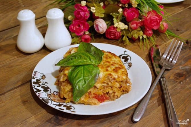 Идеально подойдет Пармезан, но это не так принципиально. Ставим лазанью в духовку на 30 минут. Подаем горячей.