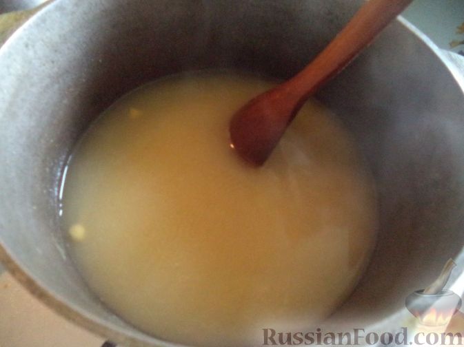 - Крупу нужно добавлять тонкой струёй, чтобы не было комков.